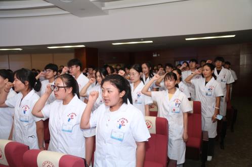 歡迎儀式上,科研教學管理中心韓曉芳主任代表醫(yī)院對實習生來院學習表示歡迎,并對醫(yī)院的基本情況進行了介紹,隨后對大家在醫(yī)院的學習生活提出六點寶貴的意見,希望同學們能迅速從思想上完成角色定位和轉變,更好、更快地適應新環(huán)境,以滿腔熱情投身于實習中去,做一個文化素養(yǎng)與專業(yè)素質兼?zhèn)涞尼t(yī)學人。隨后,學生代表劉宇成帶領全體實習生進行醫(yī)學生宣誓。