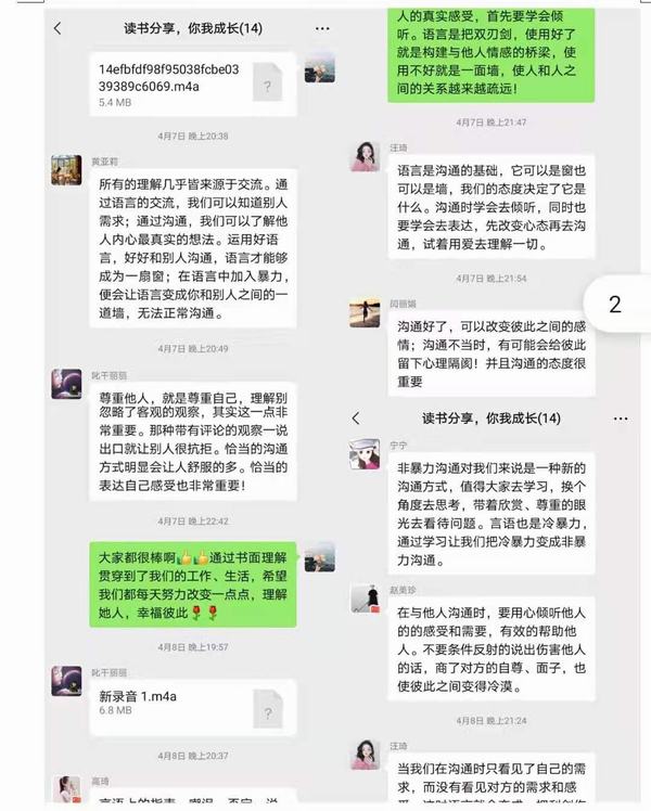 生活中人與人之間最少不了的便是溝通,為了讓溝通不再是生活及工作中的矛盾,神經(jīng)內(nèi)科六病區(qū)張文靜護(hù)士長在護(hù)理部的推薦下特意將《非暴力溝通》這本書帶給我們。下班后,我們利用自己的閑余時間,伴著悠揚(yáng)的輕音樂,細(xì)細(xì)的品味及探討。
