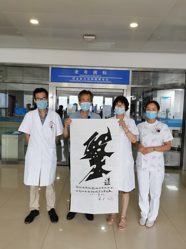2021年8月16日下午,在醫(yī)護(hù)人員井然有序忙碌的時候,一位患者家屬走進(jìn)來,拿著提袋,從里面取出一幅字畫。力透紙背的“醫(yī)道”二字,呈現(xiàn)其中。稱贊延安大學(xué)咸陽醫(yī)院老年病科霍金蓮主任醫(yī)德高尚,醫(yī)術(shù)精湛,謹(jǐn)慎負(fù)責(zé),贊美之詞溢于言表。頓時,醫(yī)生辦公室變得熱鬧起來,引來好多患者及陪人欣賞字畫,老年病科的辦公室內(nèi)充滿了歡聲笑語。