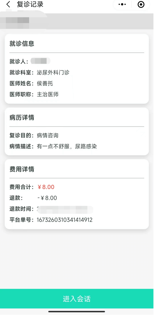 點擊消息界面,有醫(yī)生接診提醒