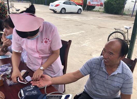 我院在建院70周年院之際開展的以“真情送健康,義診報鄉(xiāng)恩”感恩回饋為主題的大型系列義診活動, 自2019年3月啟動以來,社區(qū)服務(wù)科組織醫(yī)院義診服務(wù)團隊足跡遍布甘肅省慶陽市、平?jīng)鍪小⒈蛑菔?、乾縣、淳化縣、永壽縣、富平等地區(qū),得到了家鄉(xiāng)父老的贊譽。9月5日,我院的醫(yī)療服務(wù)團隊,來到了神經(jīng)內(nèi)科十五病區(qū)張瑞護士的家鄉(xiāng)——武功縣長寧鎮(zhèn)金城村,為當?shù)卮迕窳x診咨詢送健康。